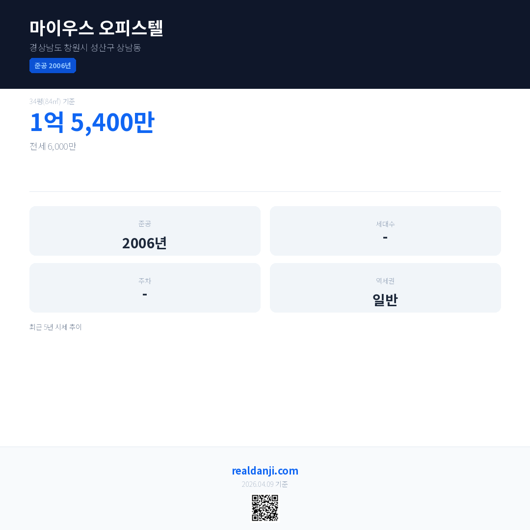 마이우스 오피스텔 최근 거래가는 1억 5,400만입니다. (2026-03)