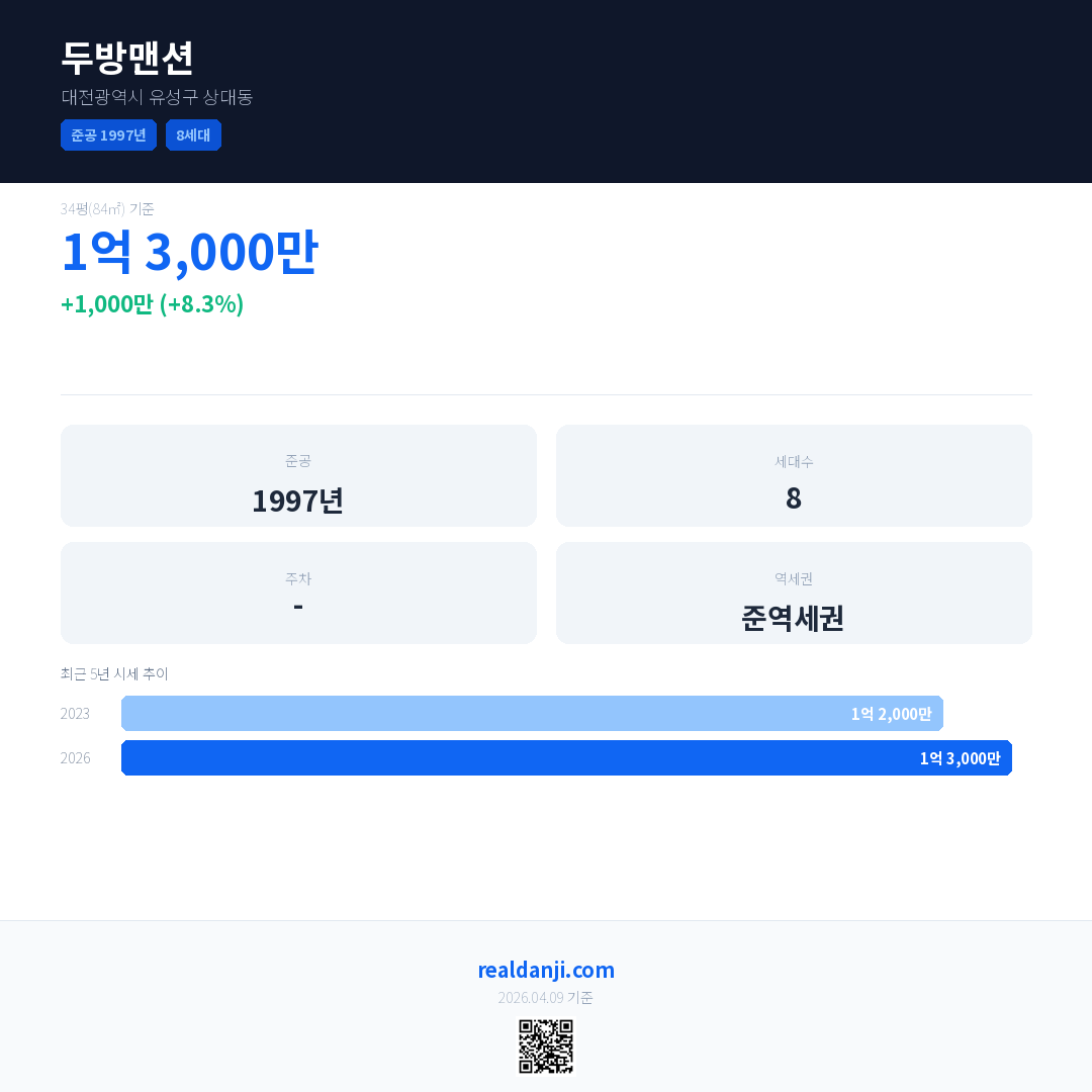 두방맨션 최근 거래가는 1억 3,000만입니다. (2026-03)