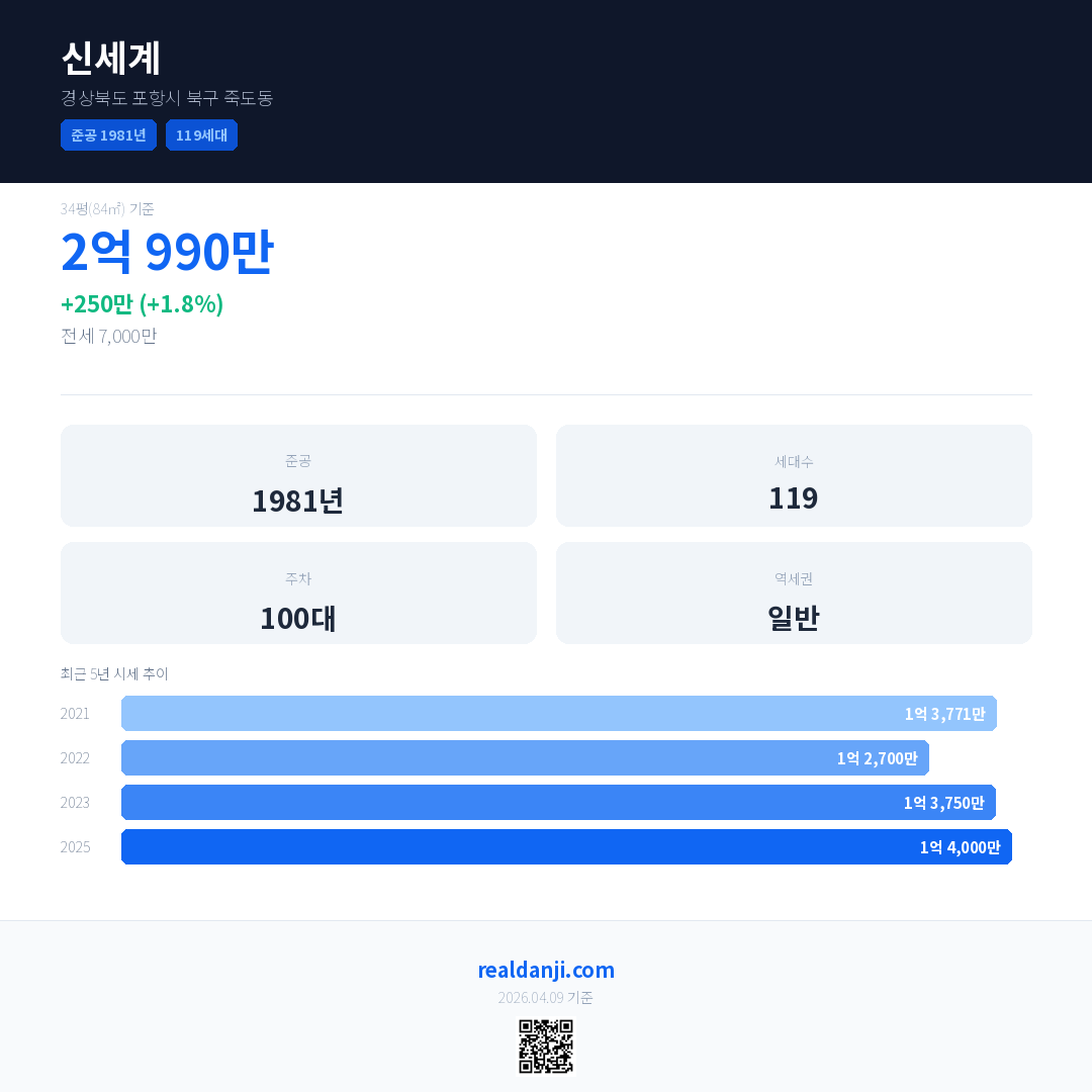 신세계 국민평형 기준 2025년 평균 거래가는 1억 4,000만으로, 전년 대비 1.8% 상승 했습니다.