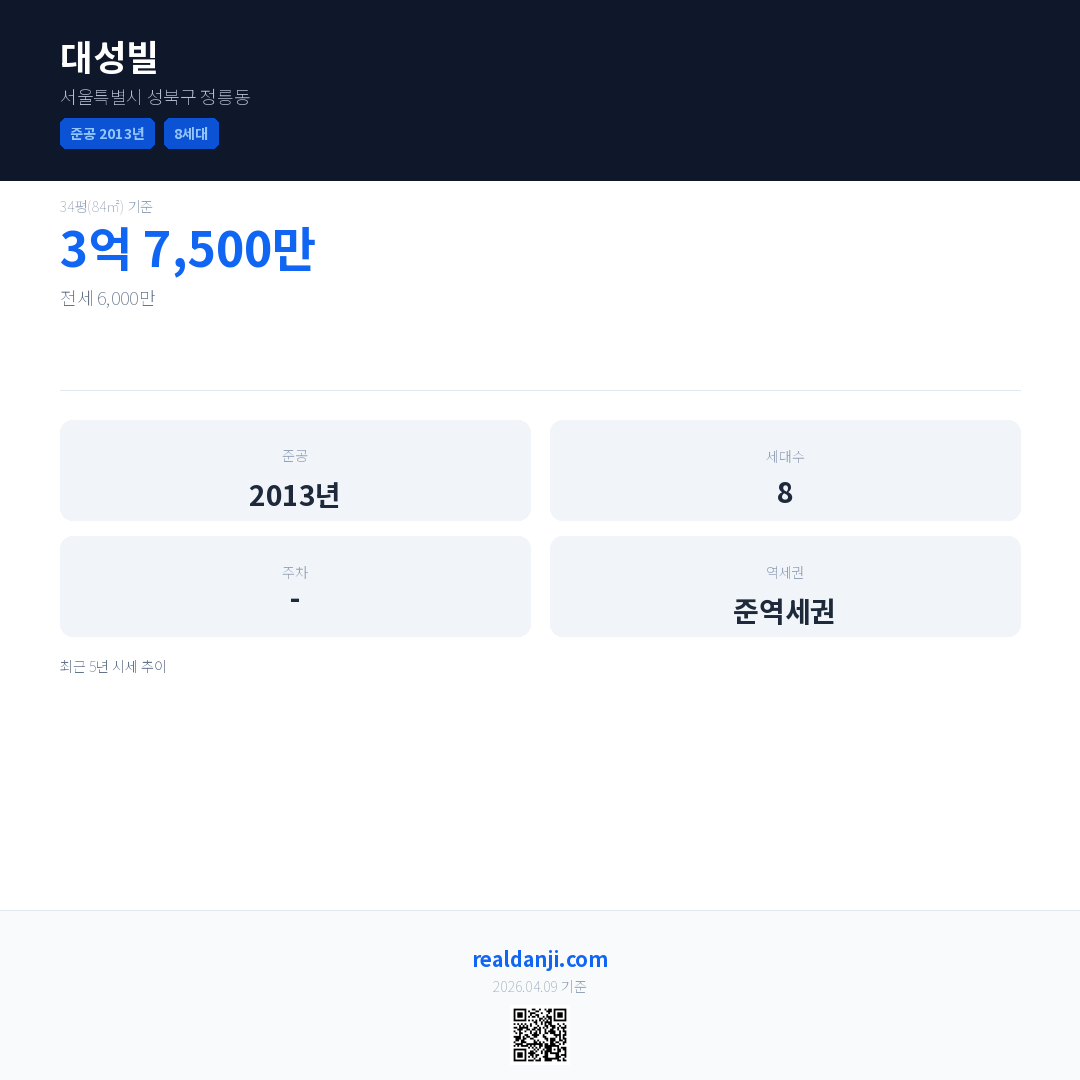 대성빌은(는) 2013년에 준공되었으며, 현재 13년차입니다. 총 8세대 규모입니다.