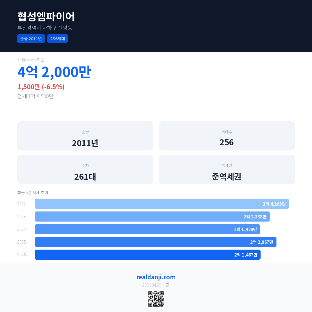 협성엠파이어 최근 거래가는 4억 2,000만입니다. (2026-03)