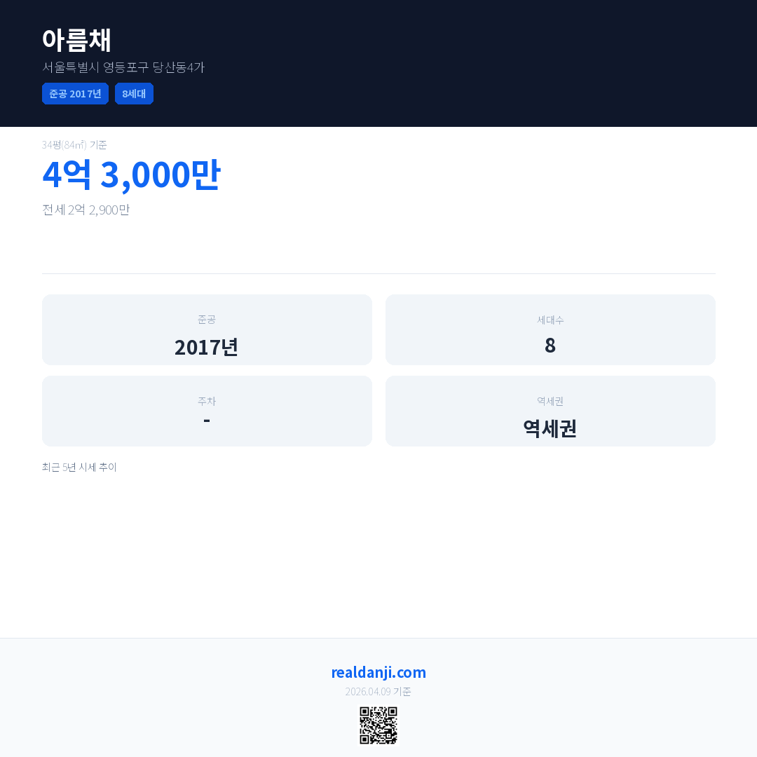 아름채 최근 거래가는 4억 3,000만입니다. (2025-06)