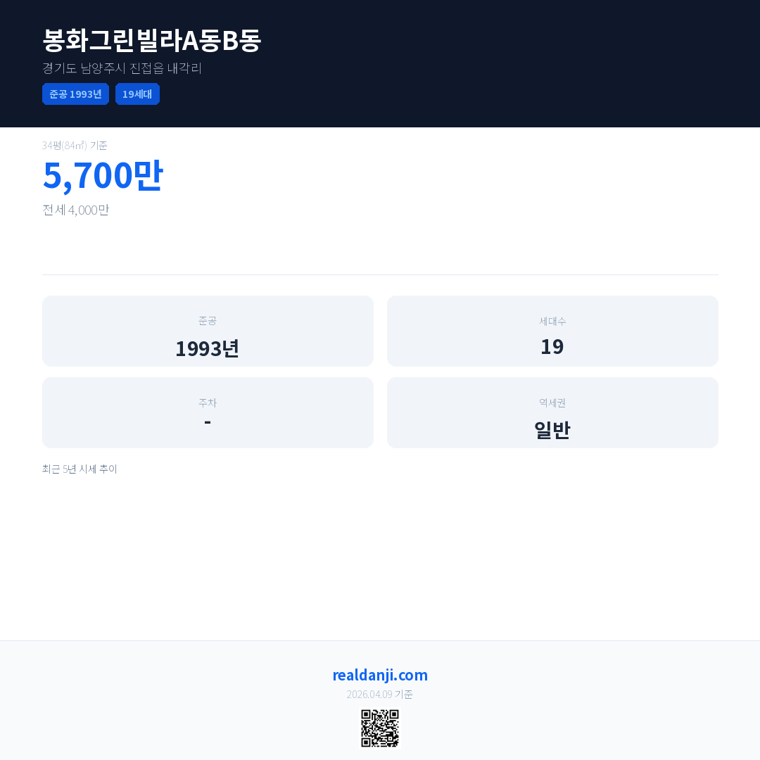 봉화그린빌라A동B동 최근 거래가는 7,700만입니다. (2026-01)