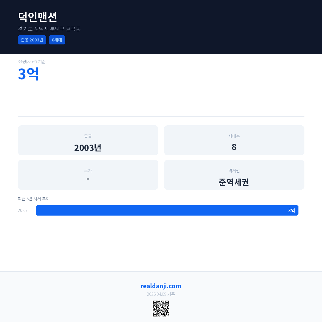 덕인맨션 최근 거래가는 3억입니다. (2025-07)