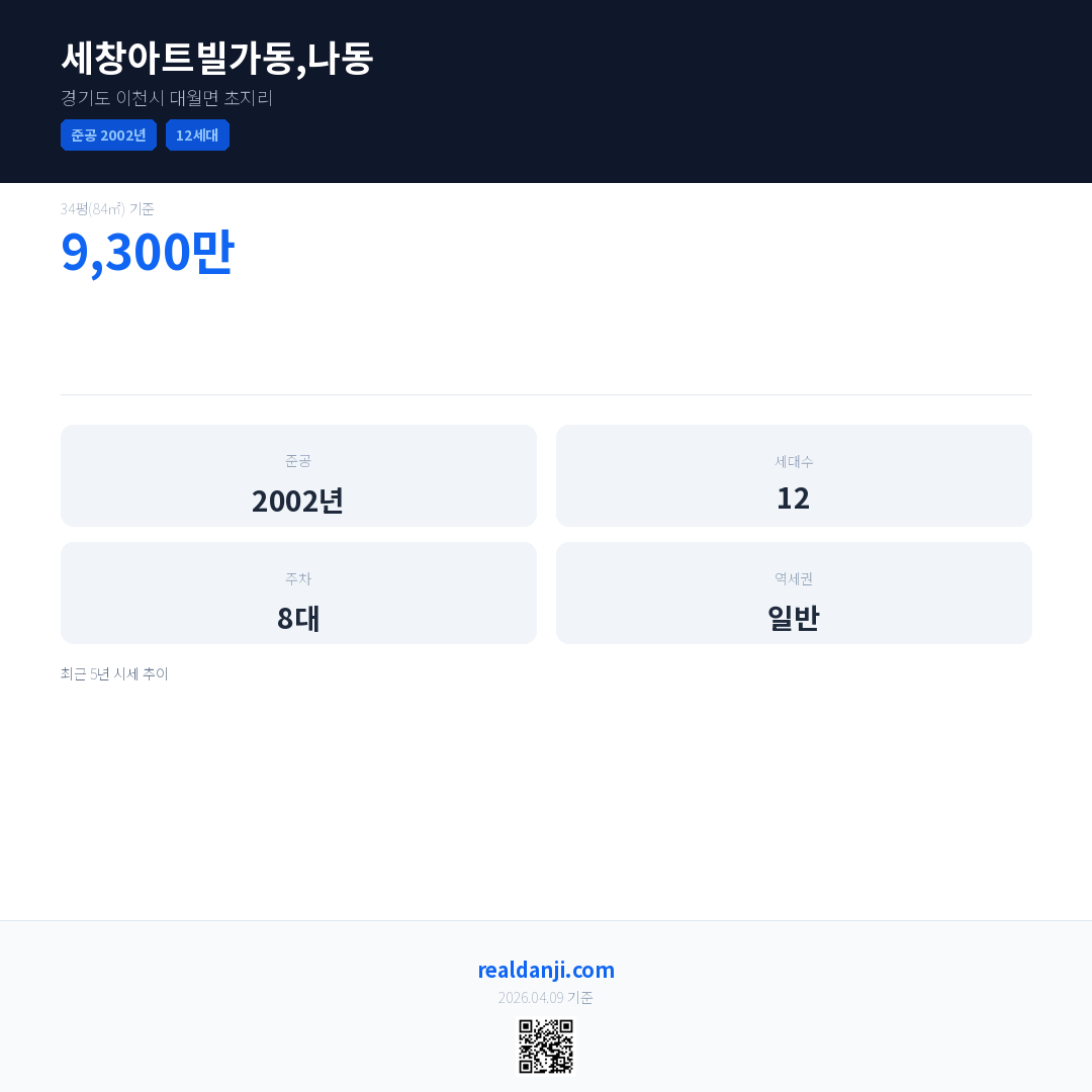 세창아트빌가동,나동 최근 거래가는 9,300만입니다. (2016-04)