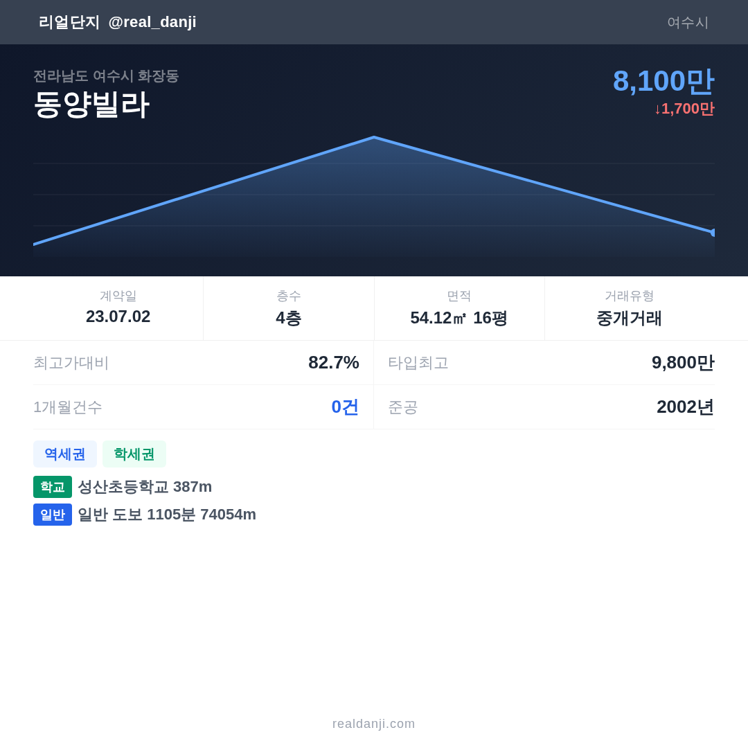 | 2023.07.02 | 54㎡ | 4층 | 8,100만 |
