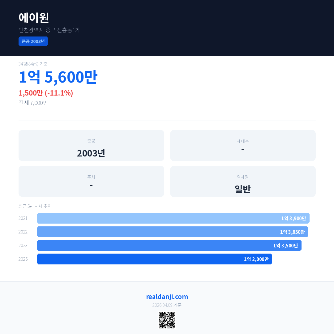에이원 최근 거래가는 1억 5,600만입니다. (2026-01)