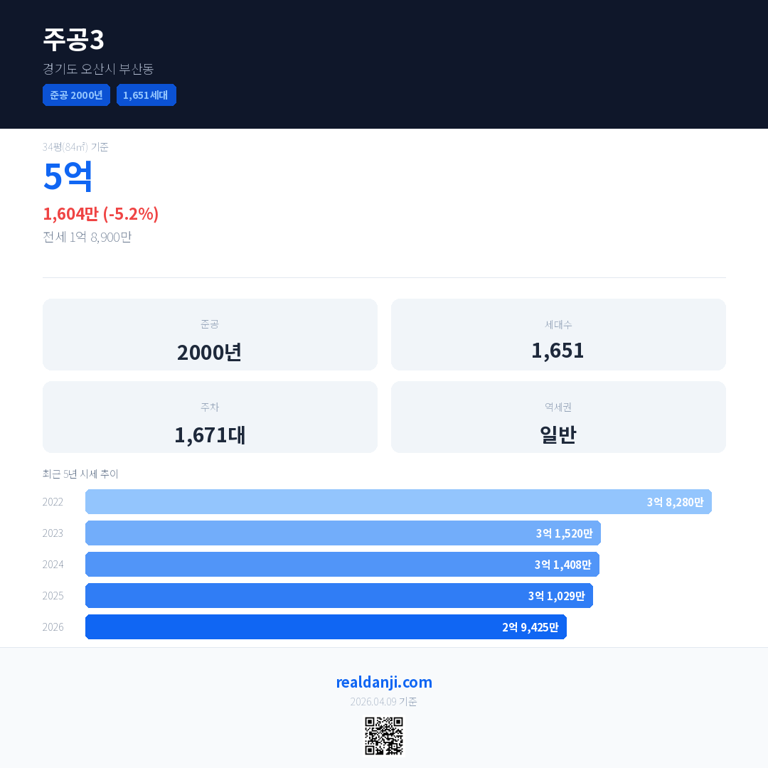 주공3 최근 거래가는 5억입니다. (2026-03)