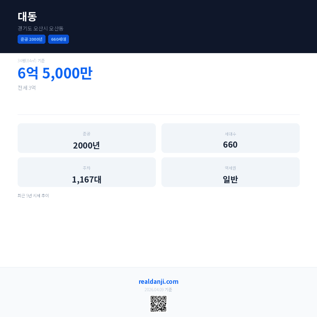 대동은(는) 2000년에 준공되었으며, 현재 26년차입니다. 총 660세대 규모입니다.