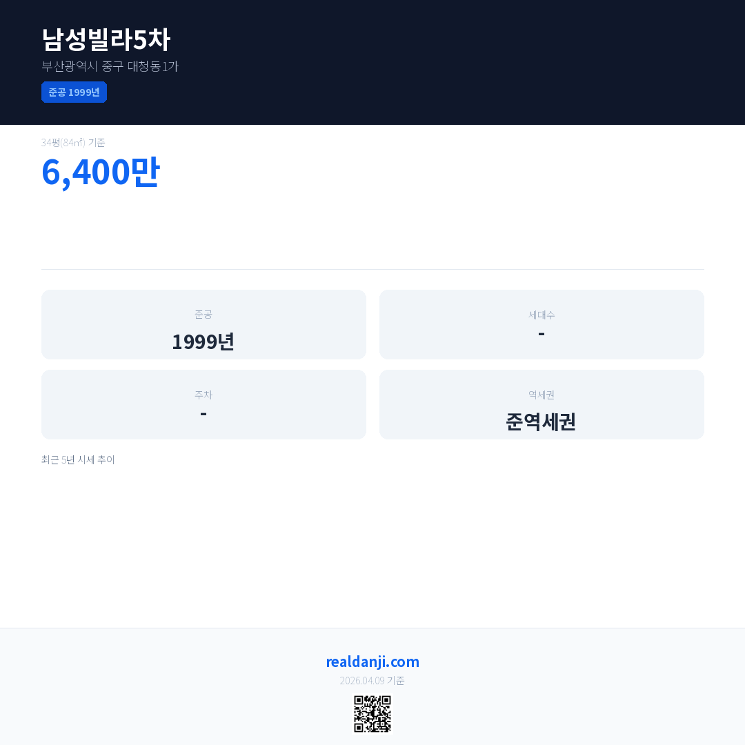 남성빌라5차 최근 거래가는 6,400만입니다. (2022-01)