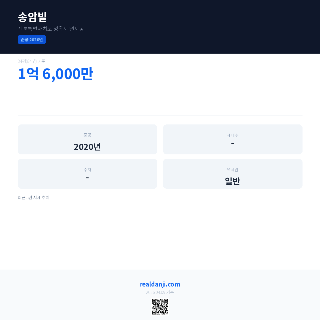송암빌 최근 거래가는 1억 6,000만입니다. (2020-12)
