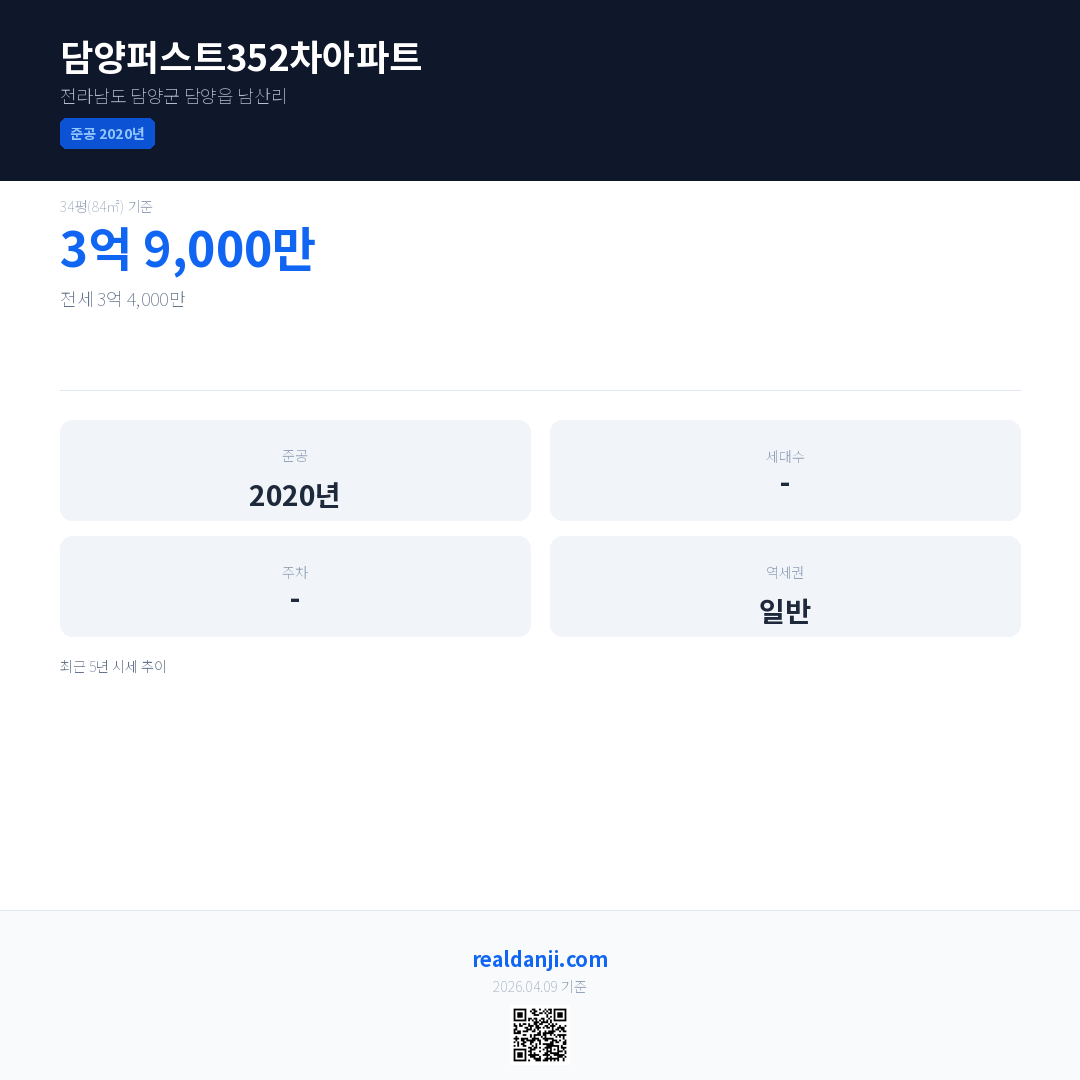 담양퍼스트352차아파트 최근 거래가는 3억 7,000만입니다. (2026-04)