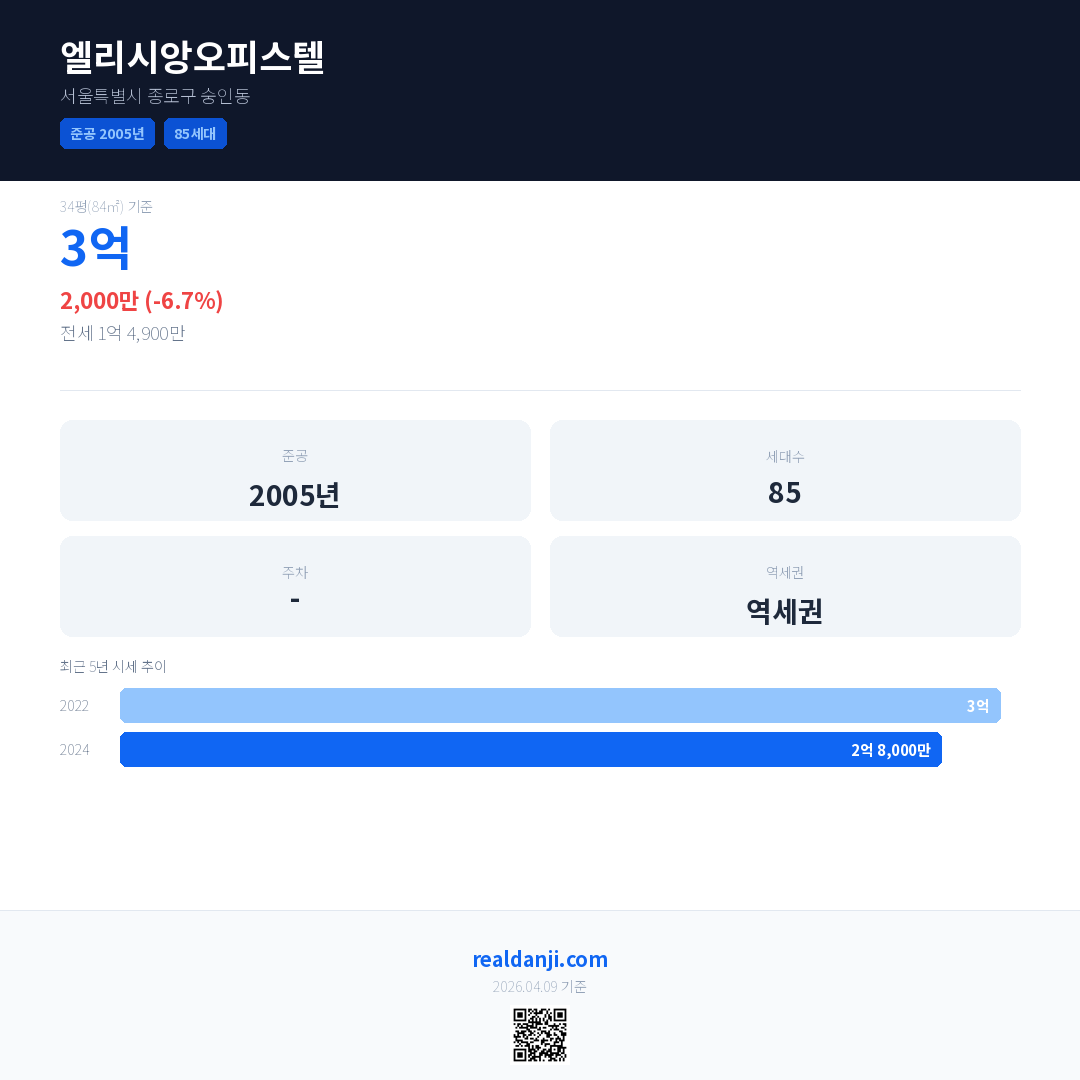 엘리시앙오피스텔 최근 거래가는 3억입니다. (2025-10)