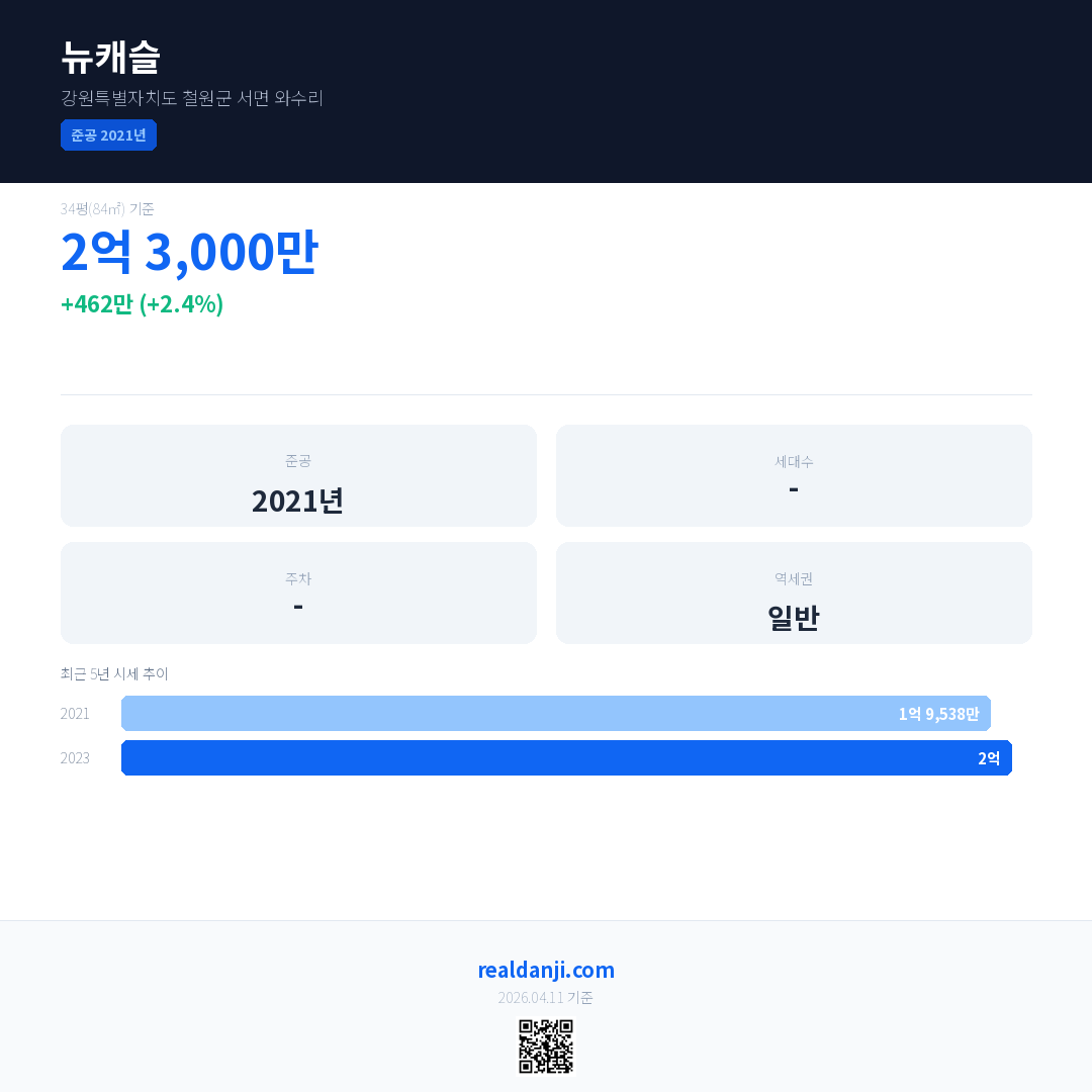 뉴캐슬 최근 거래가는 2억 3,000만입니다. (2023-06)