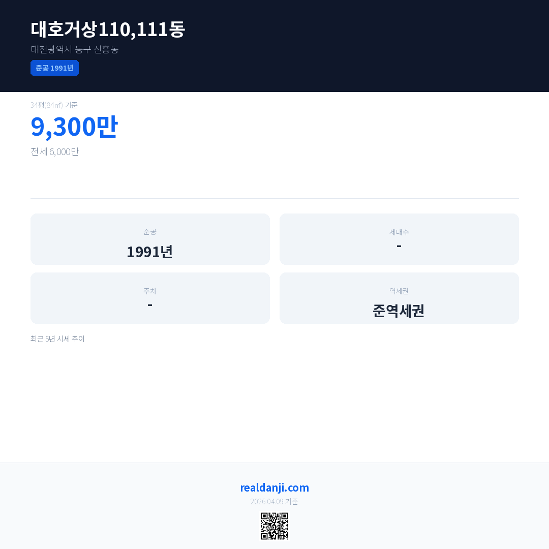 대호거상110,111동은(는) 1991년에 준공되었으며, 현재 35년차입니다.