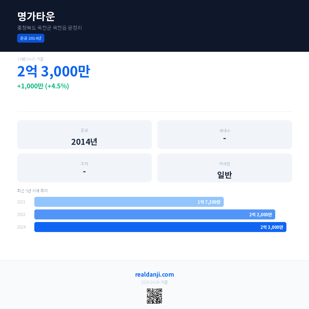 명가타운 최근 거래가는 2억 3,000만입니다. (2024-12)