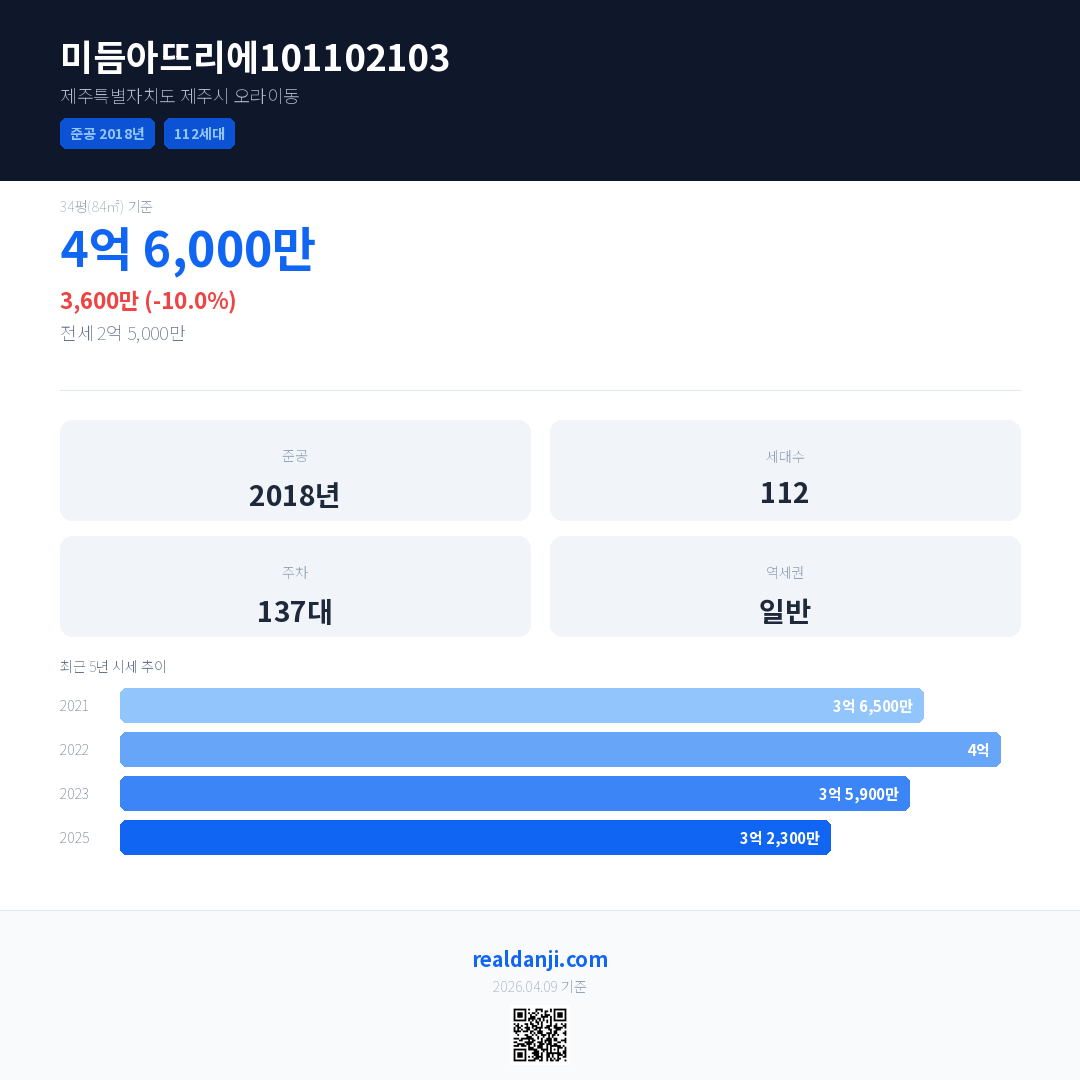 미듬아뜨리에101102103 최근 거래가는 4억 6,000만입니다. (2025-08)