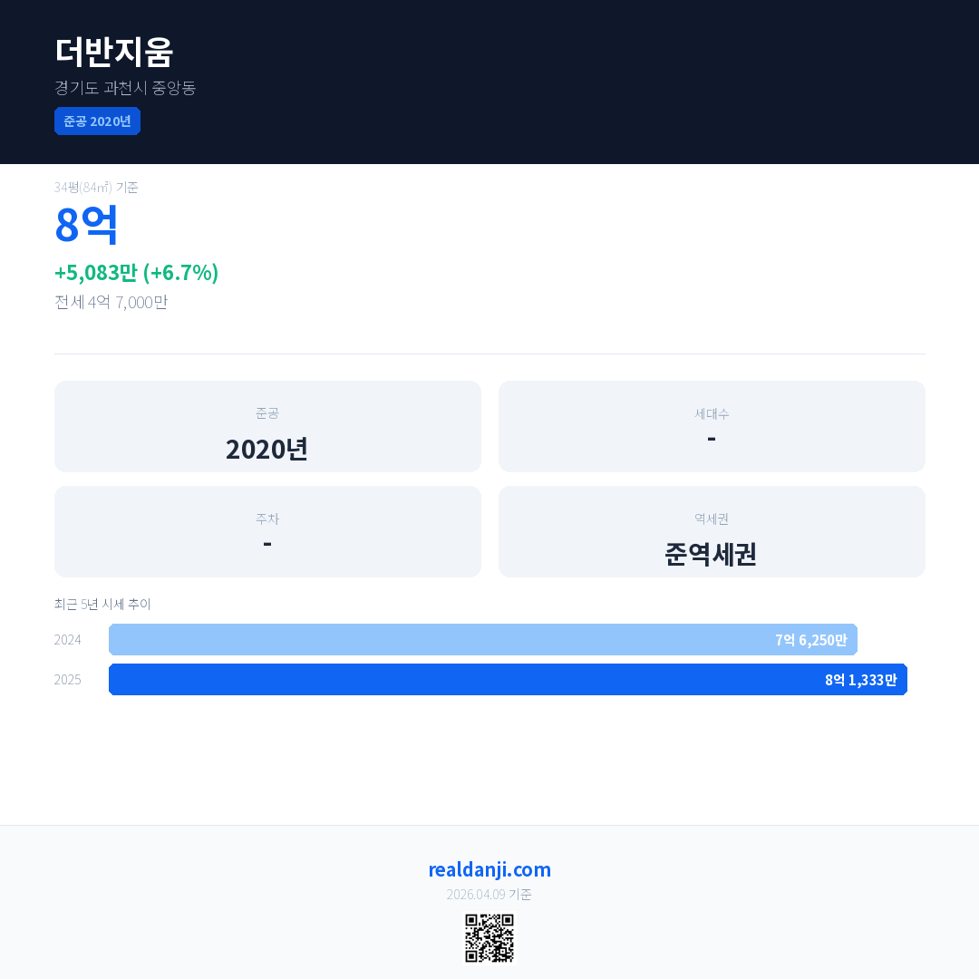 더반지움 국민평형 기준 2025년 평균 거래가는 8억 1,333만으로, 전년 대비 6.7% 상승 했습니다.