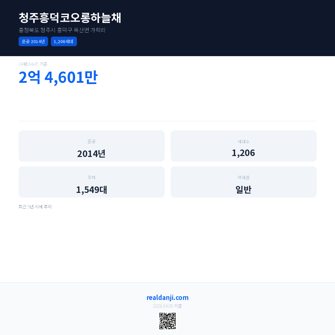 청주흥덕코오롱하늘채 최근 거래가는 2억 4,601만입니다. (2017-01)