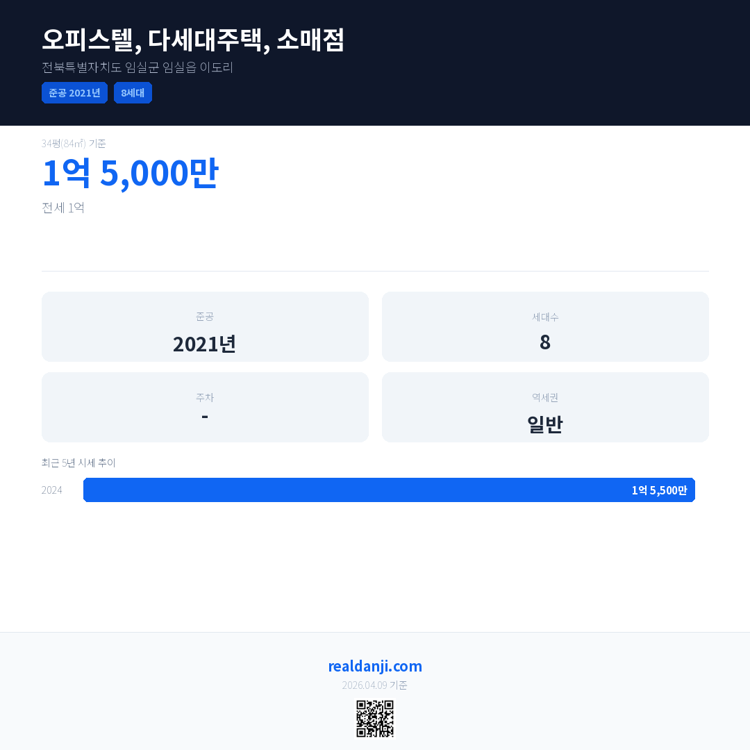 오피스텔, 다세대주택, 소매점은(는) 2021년에 준공되었으며, 현재 5년차입니다. 총 8세대 규모입니다.