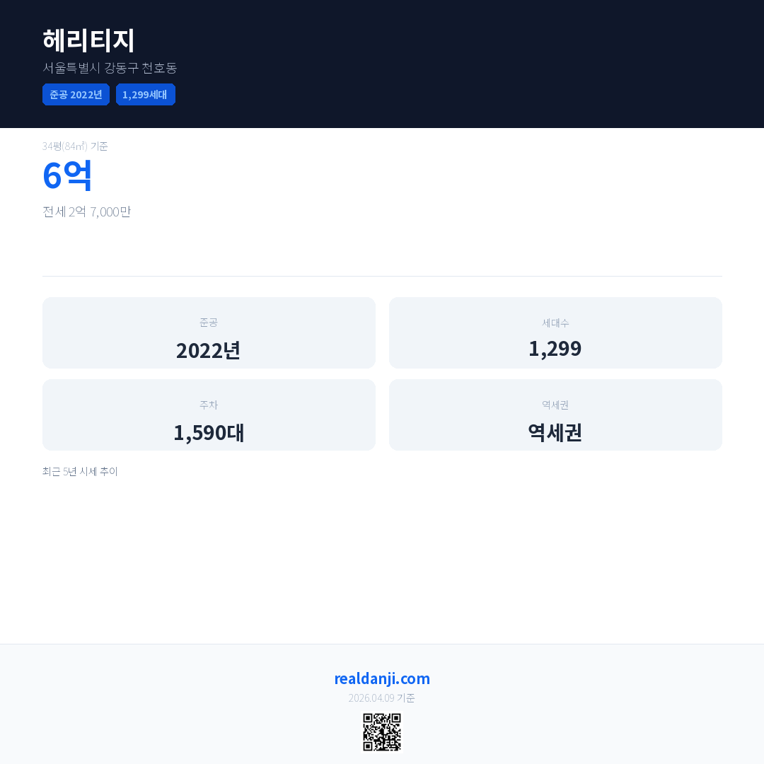 헤리티지 최근 거래가는 6억입니다. (2026-01)