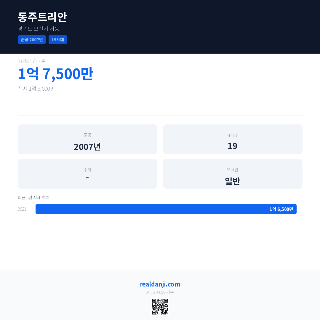 동주트리안 최근 거래가는 1억 7,500만입니다. (2022-12)