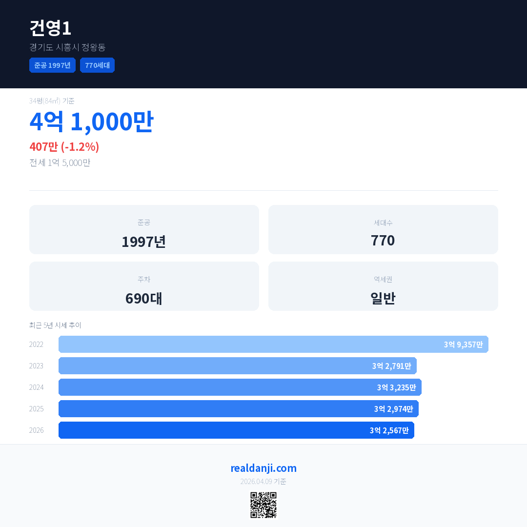 건영1 최근 거래가는 4억 1,000만입니다. (2026-04)