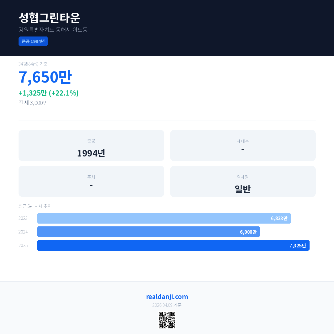 성협그린타운 국민평형 기준 2025년 평균 거래가는 7,325만으로, 전년 대비 22.1% 상승 했습니다.