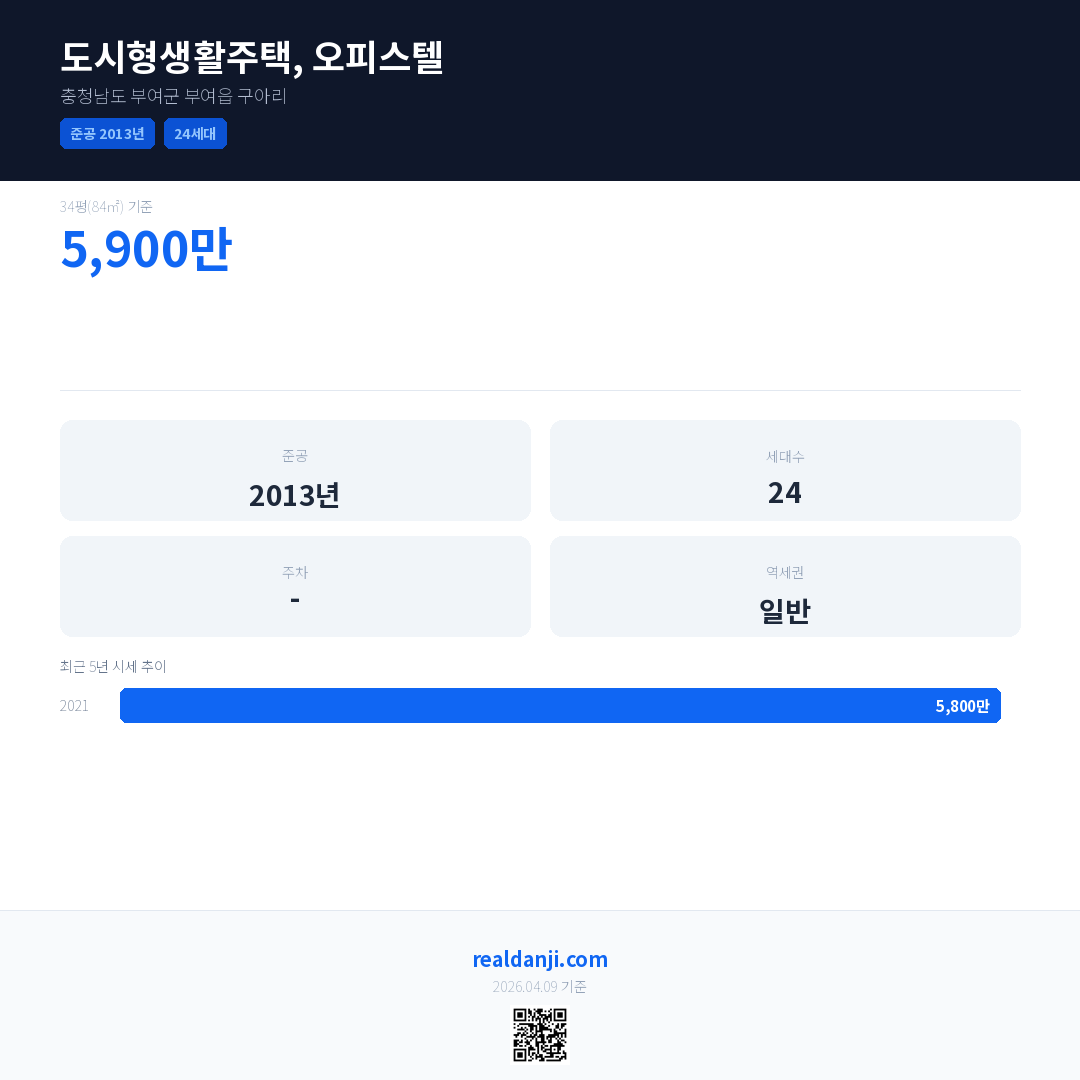 도시형생활주택, 오피스텔 최근 거래가는 5,900만입니다. (2024-09)
