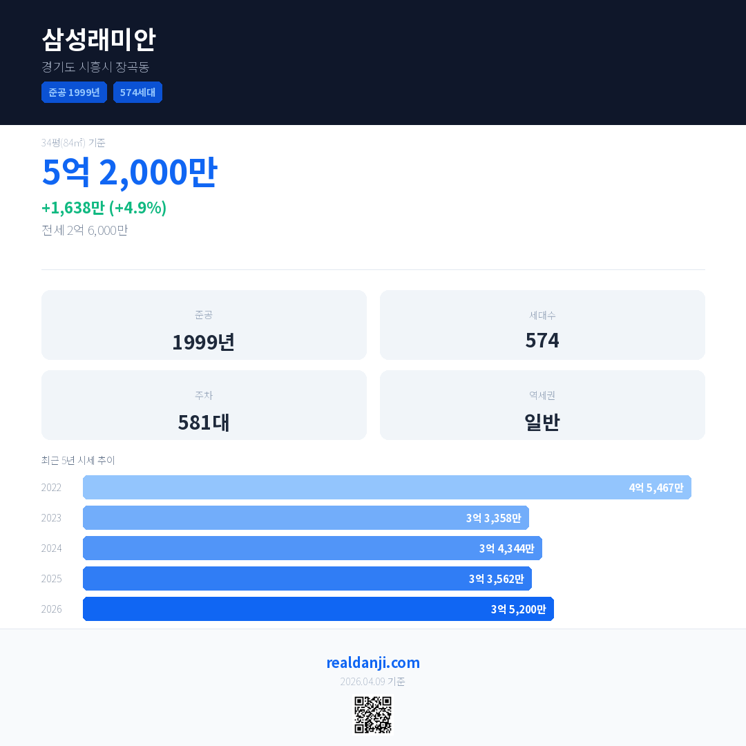 삼성래미안 최근 거래가는 5억 2,000만입니다. (2026-02)