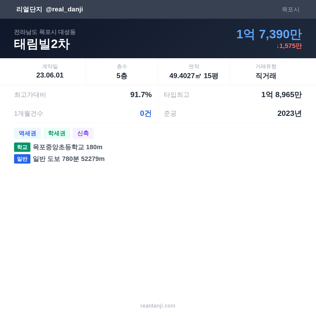 태림빌2차 최근 거래가는 1억 8,965만입니다. (2023-06)