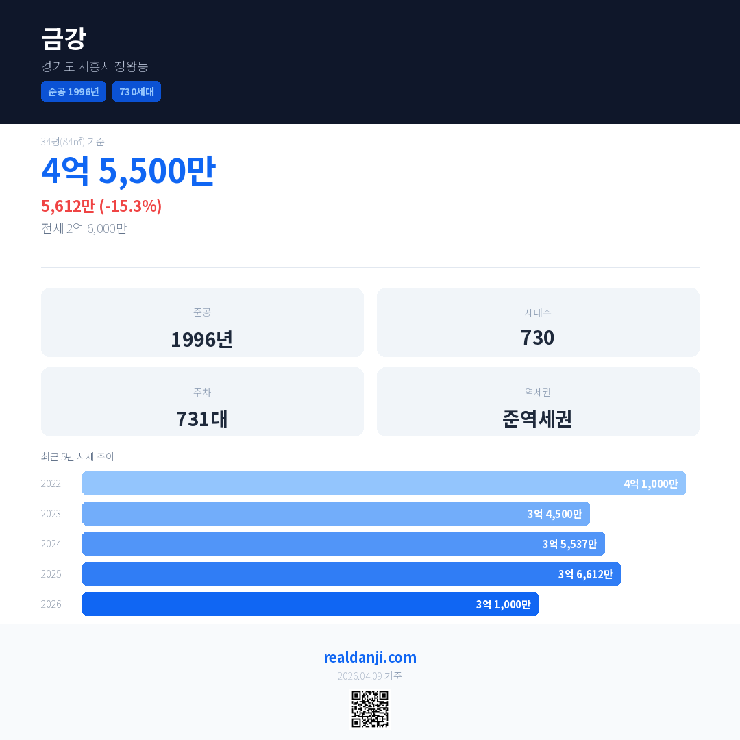 금강 최근 거래가는 4억 5,500만입니다. (2026-04)