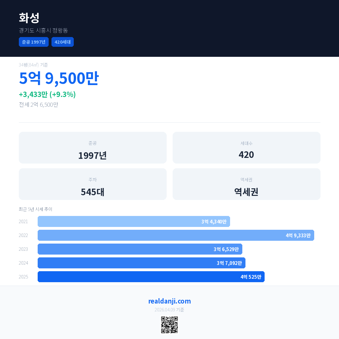 화성 최근 거래가는 5억 9,500만입니다. (2026-04)