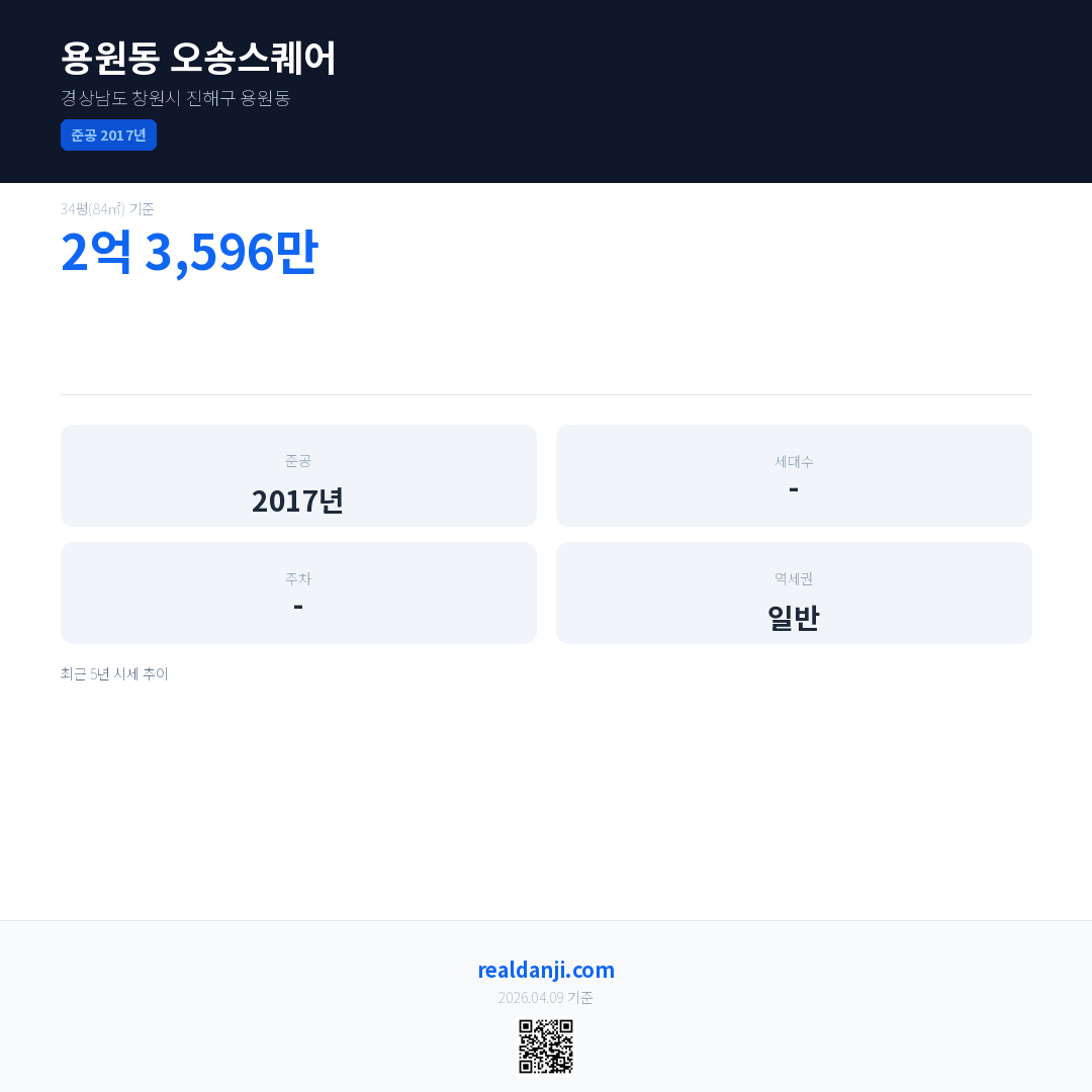 용원동 오송스퀘어은(는) 2017년에 준공되었으며, 현재 9년차입니다.