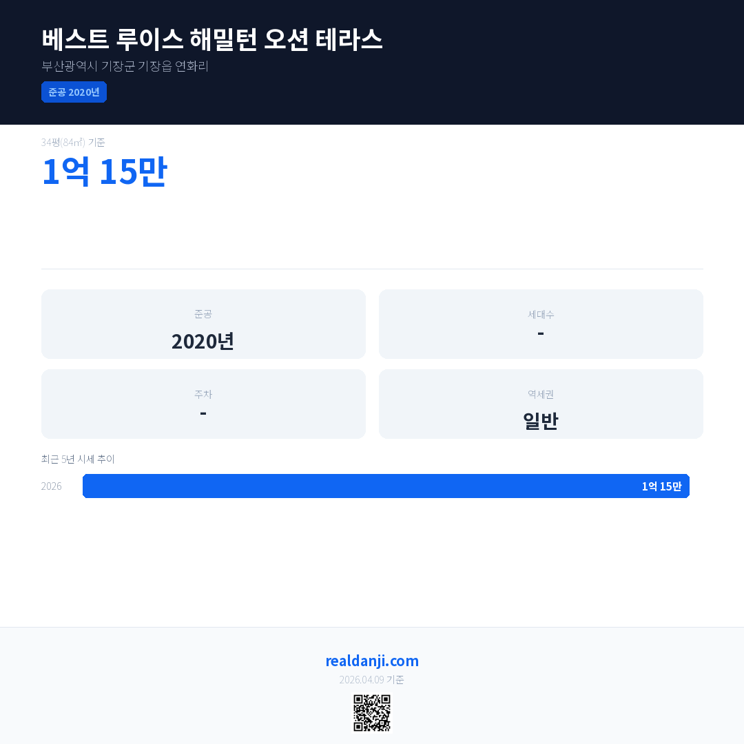 베스트 루이스 해밀턴 오션 테라스 최근 거래가는 1억 15만입니다. (2026-03)