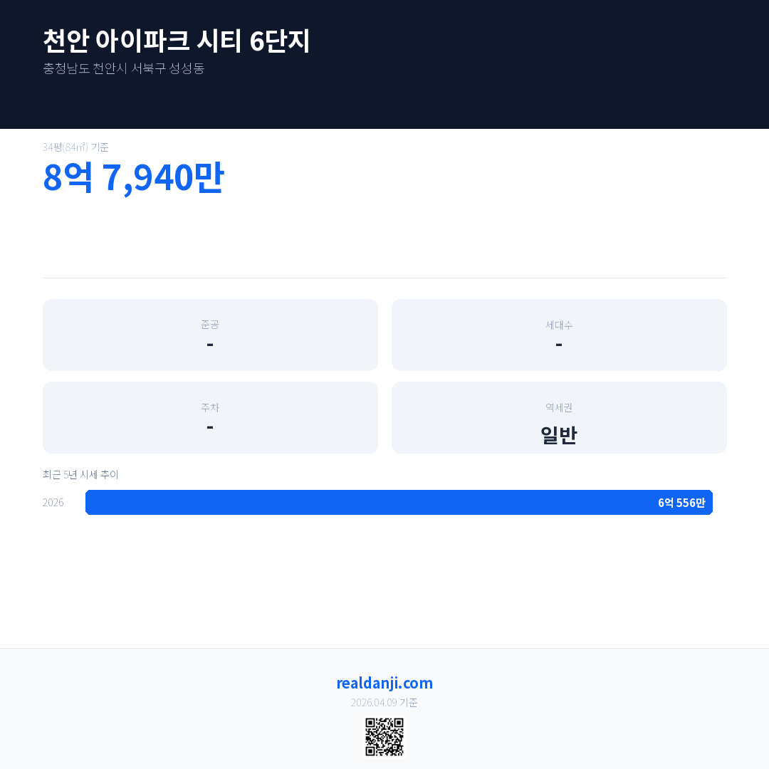 천안 아이파크 시티 6단지 최근 거래가는 6억 1,570만입니다. (2026-04)
