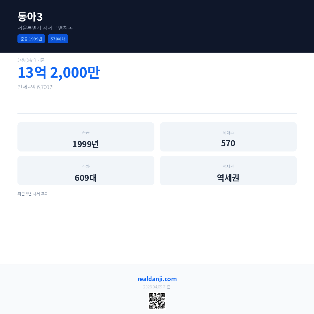 동아3 최근 거래가는 13억 2,000만입니다. (2026-02)