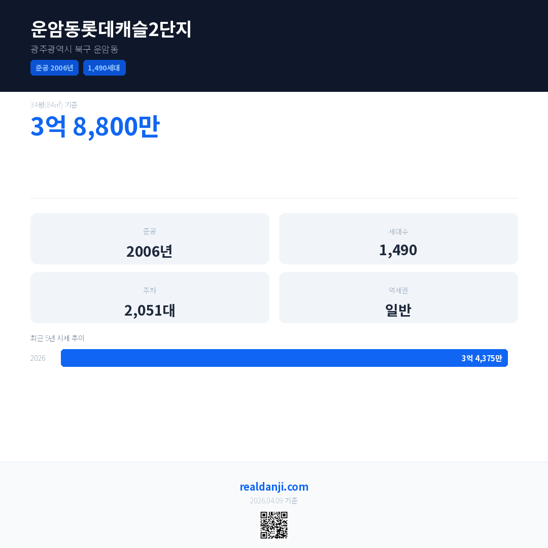 운암동롯데캐슬2단지 최근 거래가는 3억 4,750만입니다. (2026-03)