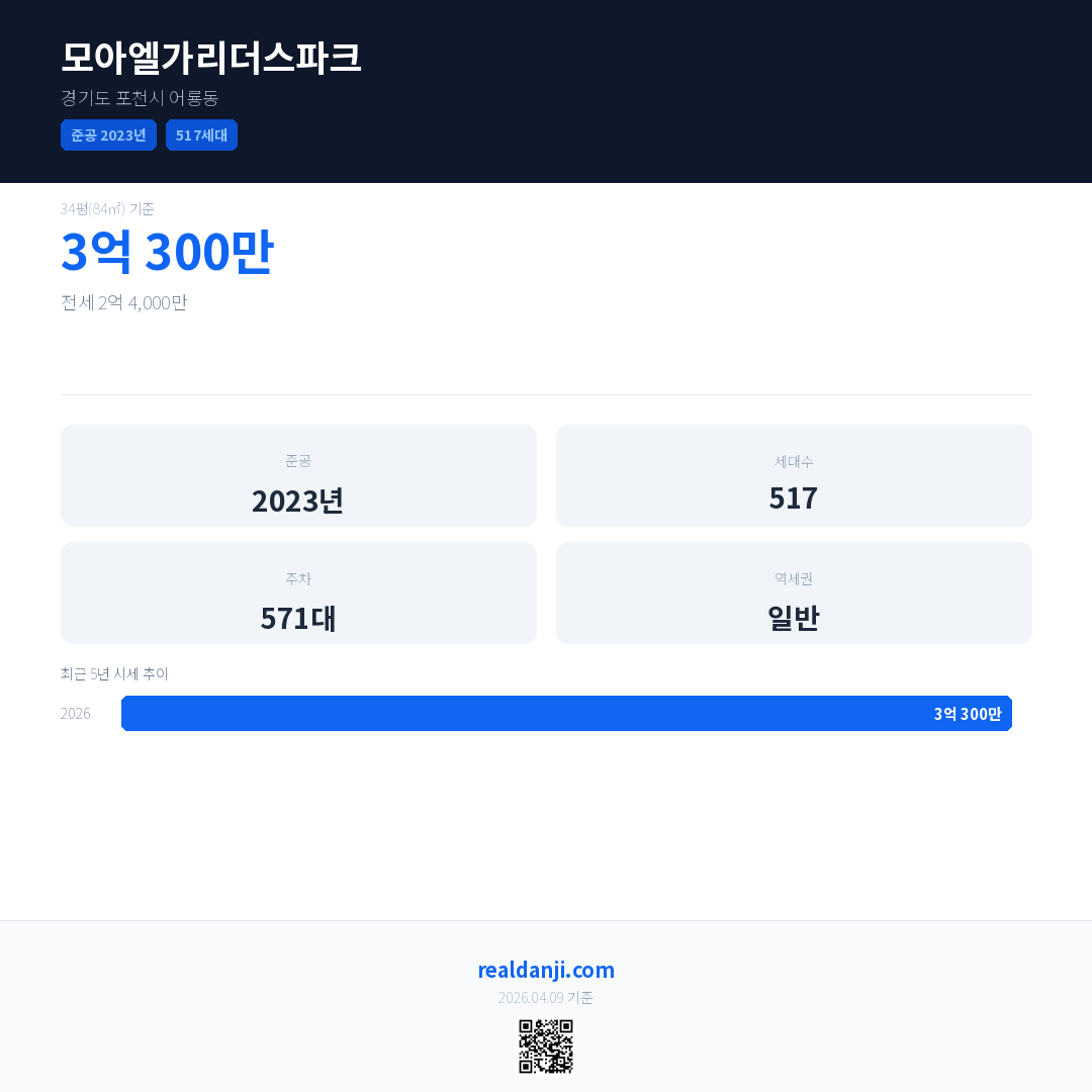 모아엘가리더스파크 최근 거래가는 3억 300만입니다. (2026-02)