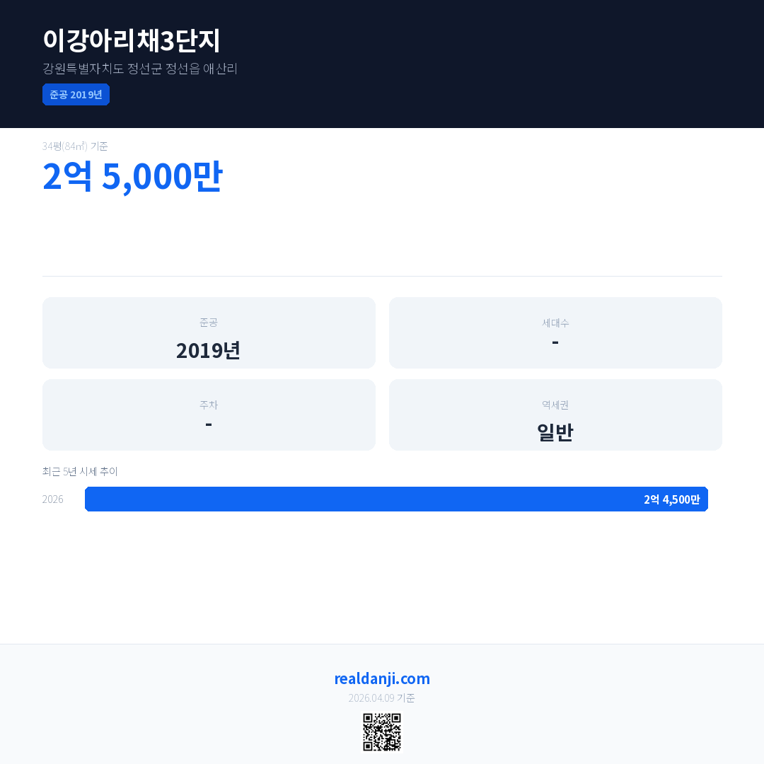 이강아리채3단지 최근 거래가는 2억 5,000만입니다. (2026-03)