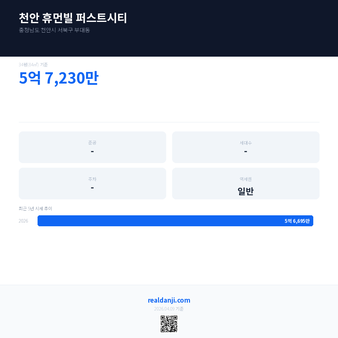 천안 휴먼빌 퍼스트시티 최근 거래가는 5억 7,230만입니다. (2026-04)