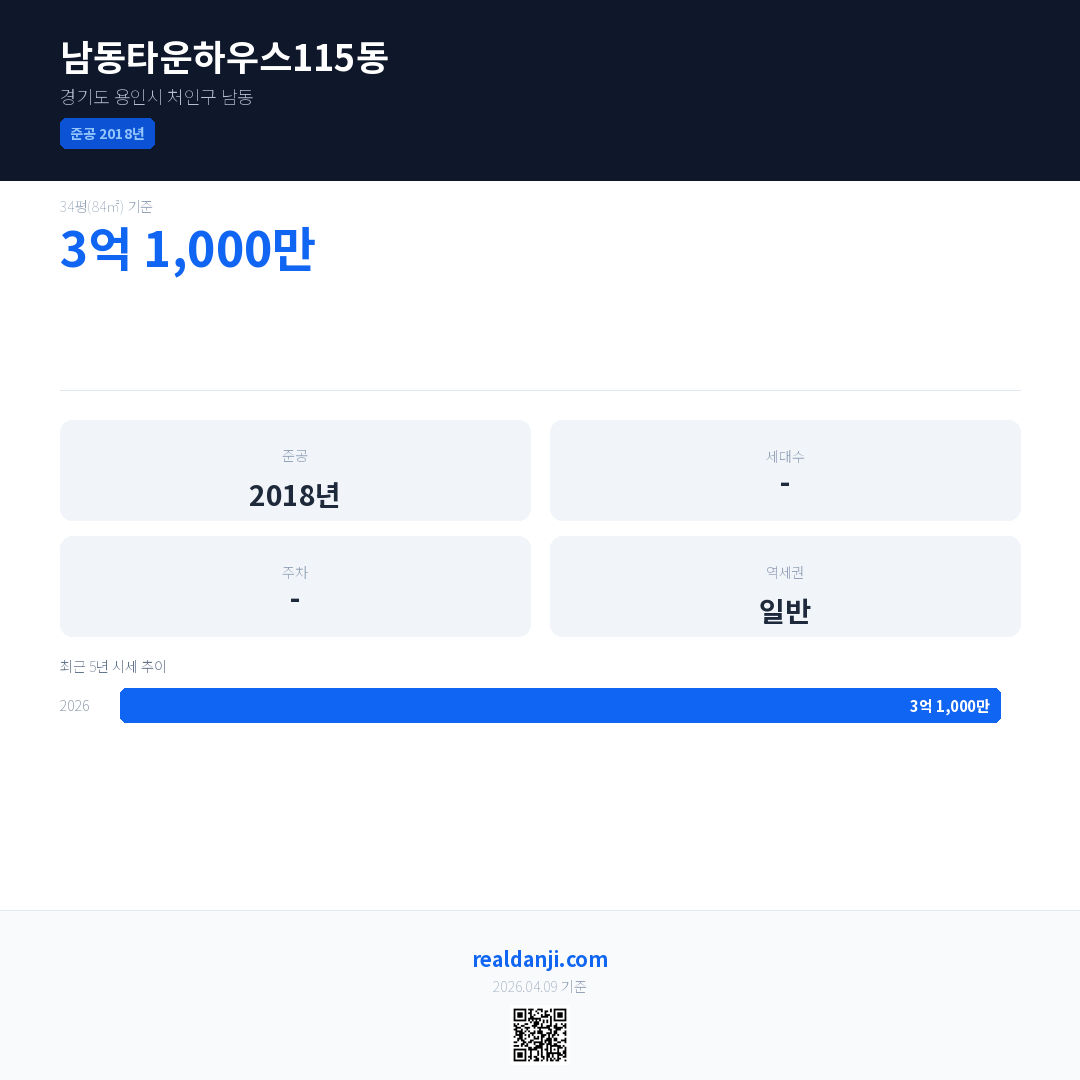 남동타운하우스115동 최근 거래가는 3억 1,000만입니다. (2026-02)