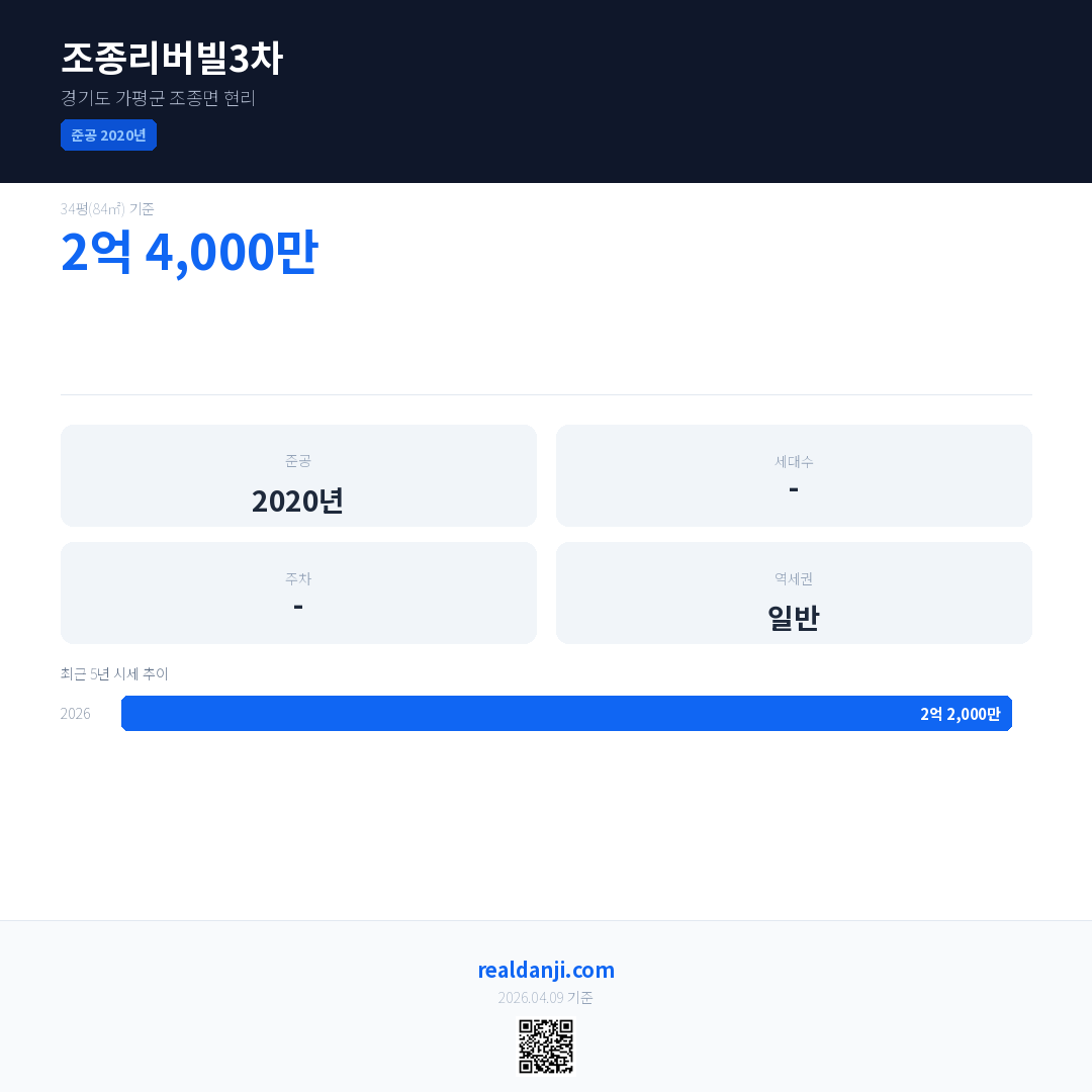 조종리버빌3차 최근 거래가는 2억 4,000만입니다. (2026-04)