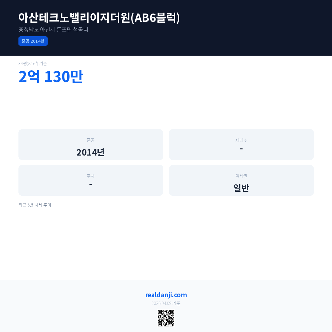 아산테크노밸리이지더원(AB6블럭) 최근 거래가는 2억 130만입니다. (2016-03)