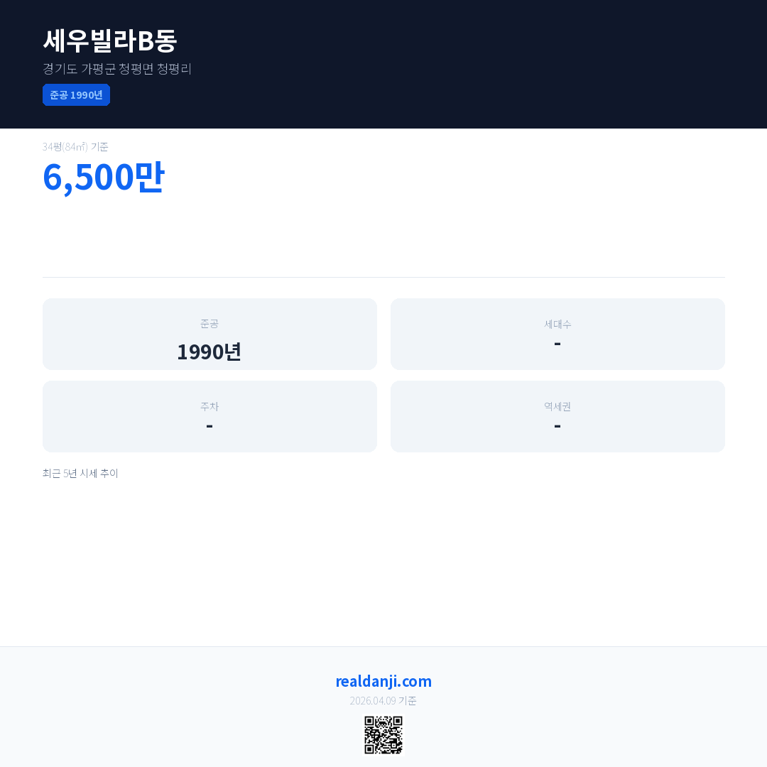 세우빌라B동 최근 거래가는 6,500만입니다. (2026-03)