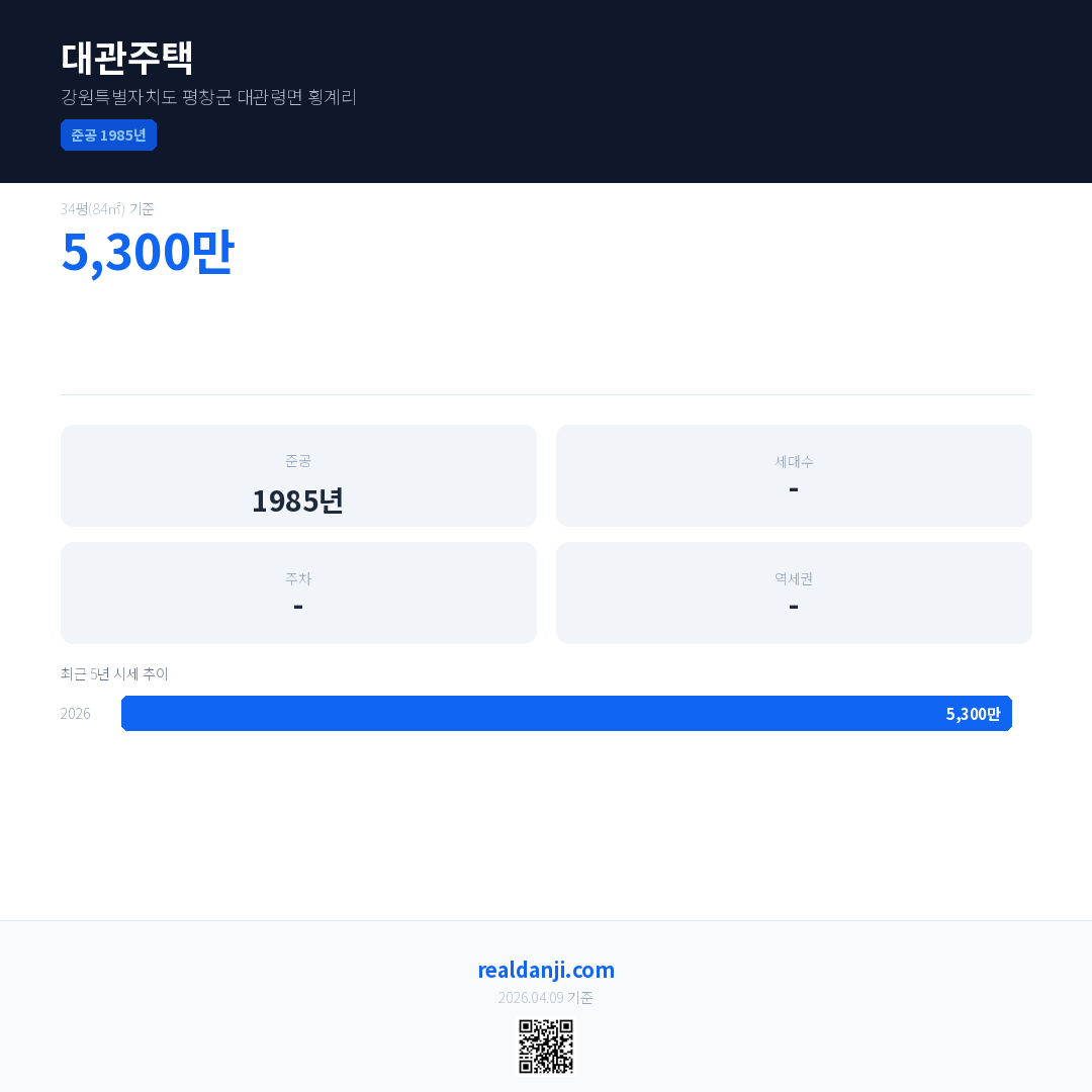 대관주택 최근 거래가는 5,300만입니다. (2026-03)
