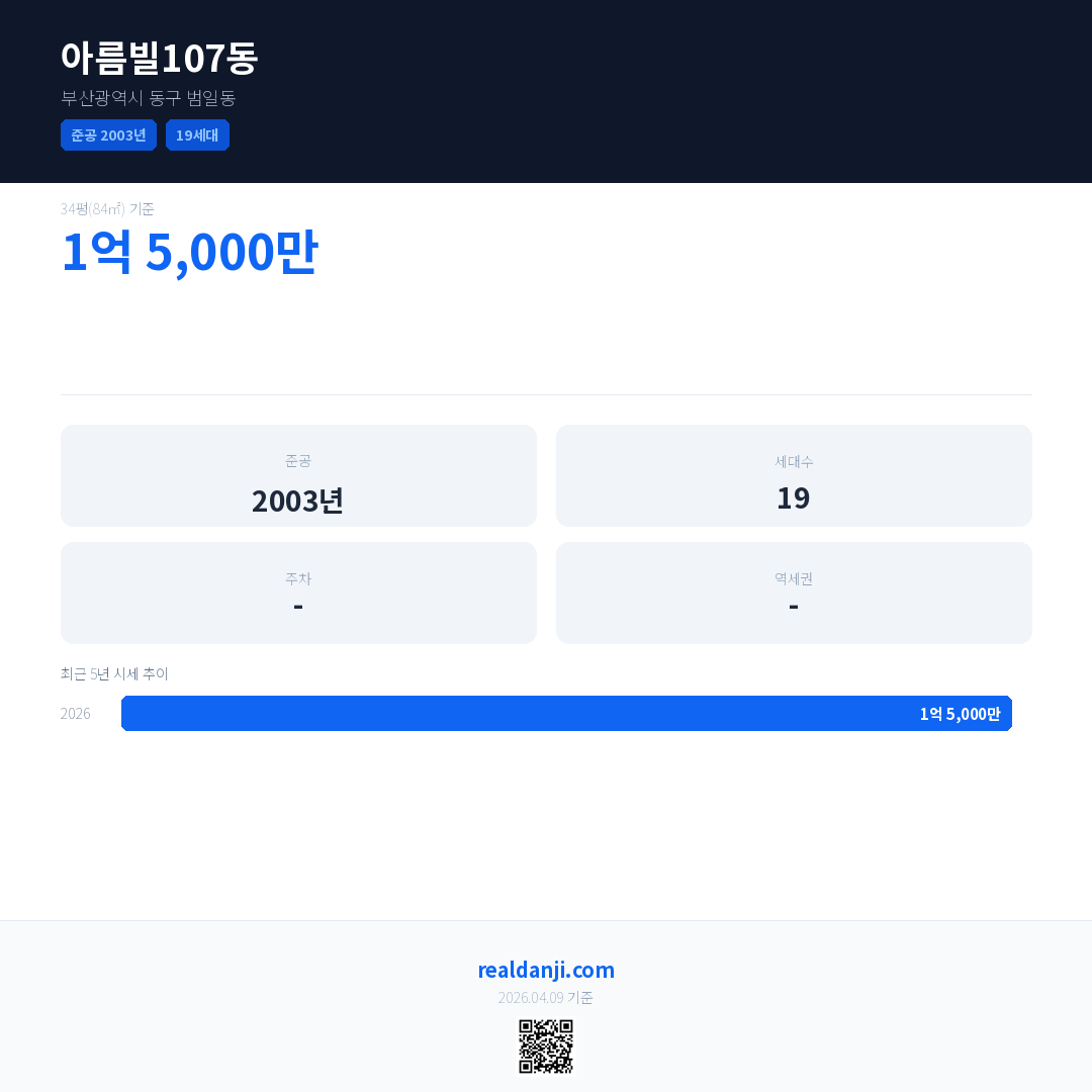 아름빌107동 최근 거래가는 1억 5,000만입니다. (2026-03)
