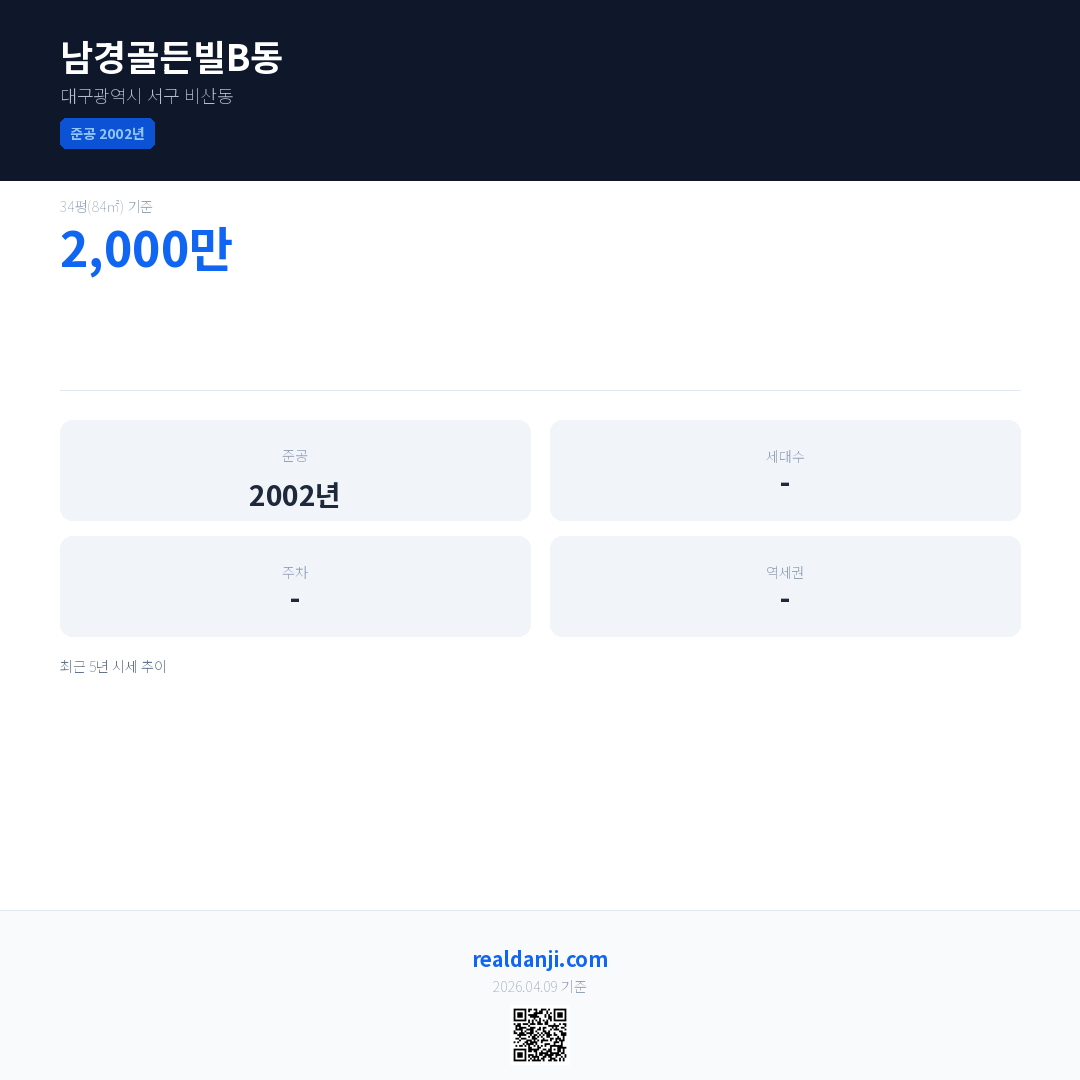 남경골든빌B동 최근 거래가는 2,000만입니다. (2026-04)