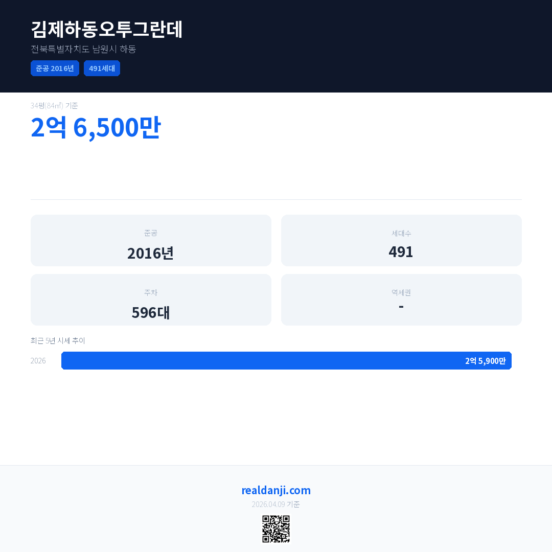 김제하동오투그란데 최근 거래가는 2억 6,500만입니다. (2026-03)