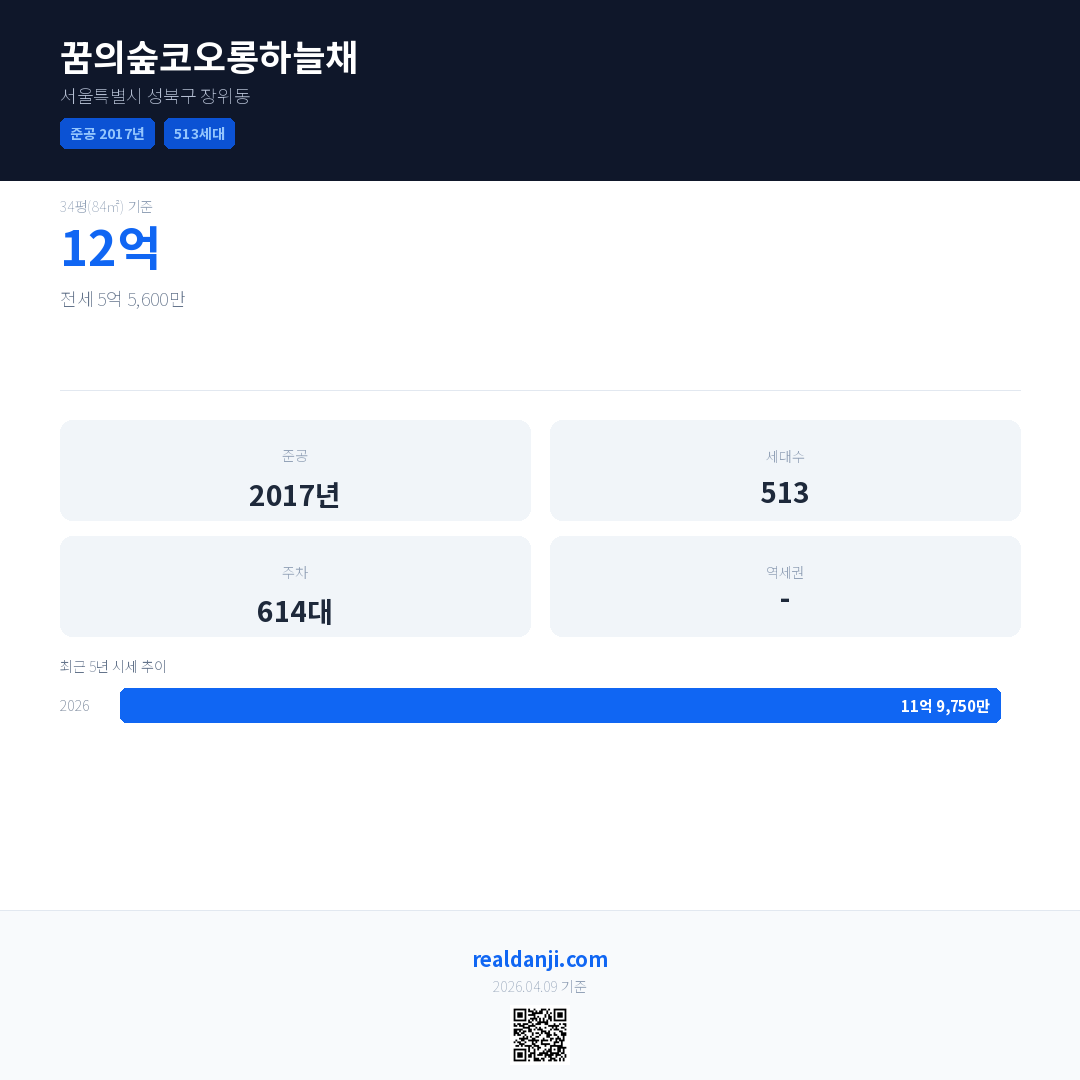 꿈의숲코오롱하늘채 최근 거래가는 12억입니다. (2026-03)